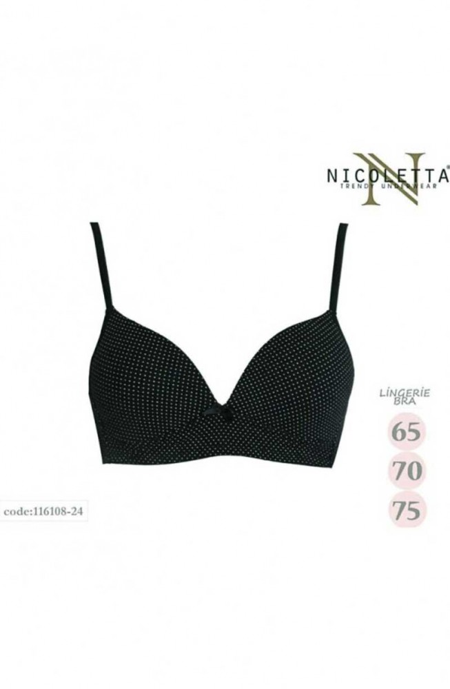 Цена за упаковку - 3 шт. (ростовка). В упаковке 3 лифчика одного цвета в разных размерах (65,70,75). Сосотав - 100% хлопок. Цвет - черный в горох